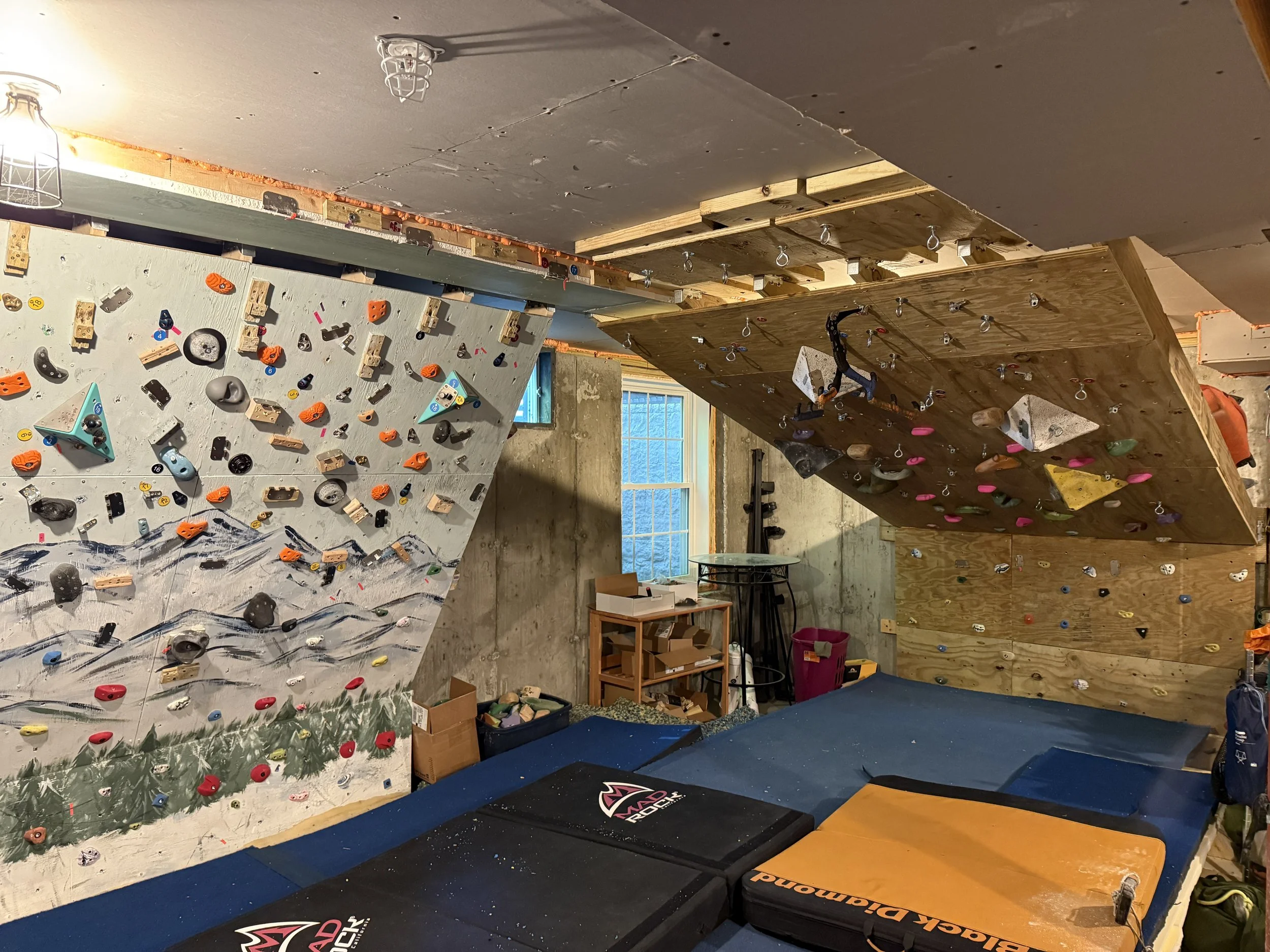 December and January training consisted primarily of sessions on my tools in steep terrain. I spent 4-5 hours each week on my home walls (15,30,and 70 degree overhanging) moving on tools. I’d do endurance work, hard boulder problems that require enormous tension on insecure holds that mimic the insecure alpine-style mixed climbing here in the Northeast, and figure-4/9 based boulder problems to mimic some of the M12/13 projects I was focusing on this winter. This volume of time on holds/moves that are significantly harder than any physical moves on ice routes, and honestly way more technically difficult than any mixed/drytooling routes I’ve been on, created both a physical reserve and mental confidence to push myself on routes this winter, especially on Teufelsgeige. Despite being tired and pumped on pitch 4, the terrain felt less taxing and the pump more manageable than spending all that time on incredibly steep terrain in the home gym!